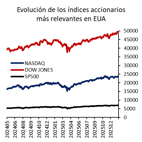 Desde inicios del segundo trimestre del 2025, hemos visto que el mercado accionario en Estados Unidos ha mostrado una apreciación significativa (Gráfica 1).
